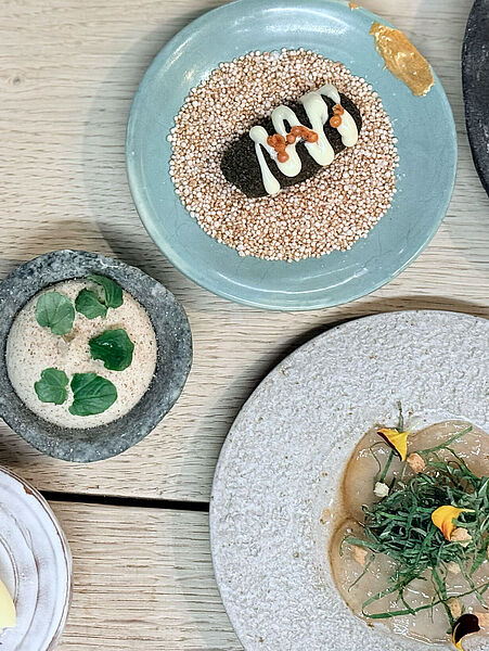 „Wir kennen jedes Gesicht, das hinter den Lebensmitteln steckt“, sagt Lukas und setzt fort. „Es reicht nicht, gut zu kochen und eine schöne Lage zu haben. Wir wollen die Gäste einbinden, ihnen die Scheu nehmen und die Einfachheit vom Kochen und die Vielfalt zeigen.“ Das funktioniert außergewöhnlich gut, auch weil auf jeden Rücksicht genommen wird. Allein das 4-Gang-Genießermenü mit sechs Amuses von Lukas Nagl für Hotelgäste am Abend ist eine Wucht (was zu erwarten war), baut Barrieren ab und fördert die kulinarische Neugier (69 Euro für Hotelgäste, Stand Oktober 2025). Neugierig geworden? Einfach hinfahren und Gusto holen.
