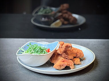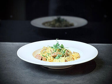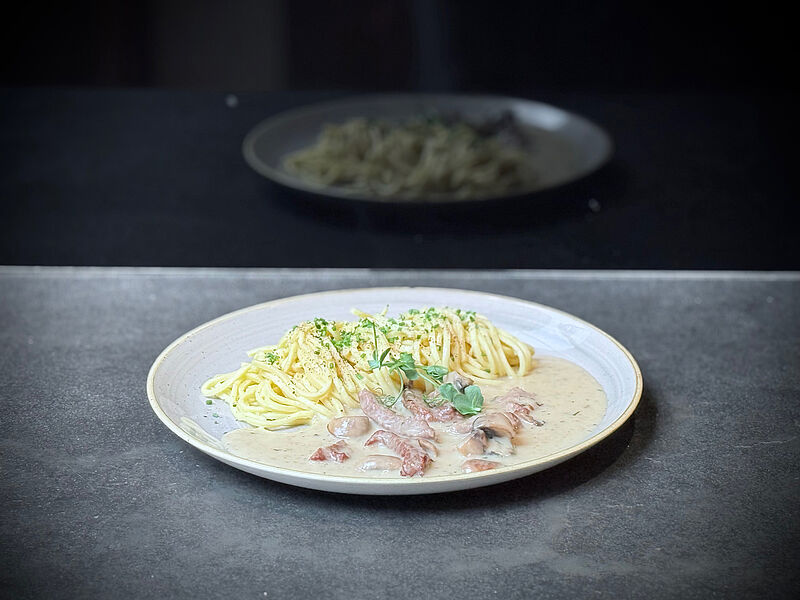Kaffee wurde ebenso in den historischen Gemäuern geröstet. Heute sind die Räumlichkeiten als BMW-Suite zu buchen. Kaffee gibts jetzt einen Stock tiefer in den Gaststuben. Noch weiter unten befindet sich der Weinkeller mit historischem Gewölbe und 3000 Flaschen, die wie geschaffen sind für Feierlichkeiten.