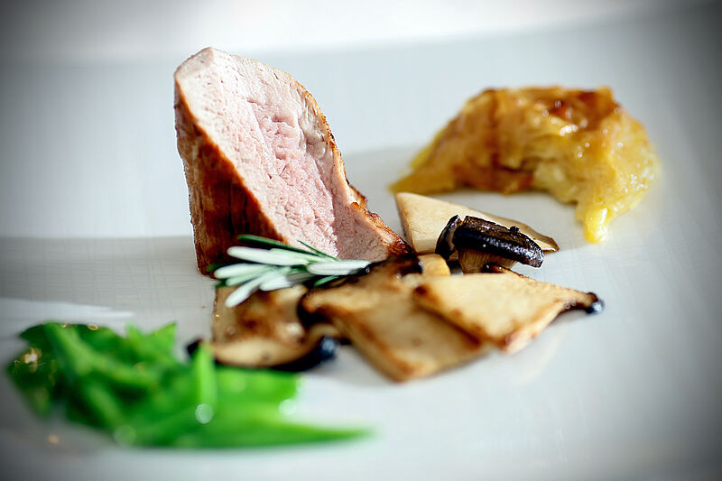 „Wir kochen noch und wärmen nicht auf“, erklärt Robert. Kälber, Rinder oder Hirschen liefern Bauern und Jäger aus der Umgebung. Zerlegt wird im Haus. „Natürlich muss man das können, auch wie ein Jus hergestellt wird. Aber wir haben das von der Pike kennengelernt und wollen ein guter Gastgeber sein. Deswegen brauchen wir den Kontakt zu den Gästen und unsere Mitarbeiter müssen wissen, für wen sie kochen. Wenn du eine Beziehung hast, dann kochst du auch lieber“, sagen beide unisono.
